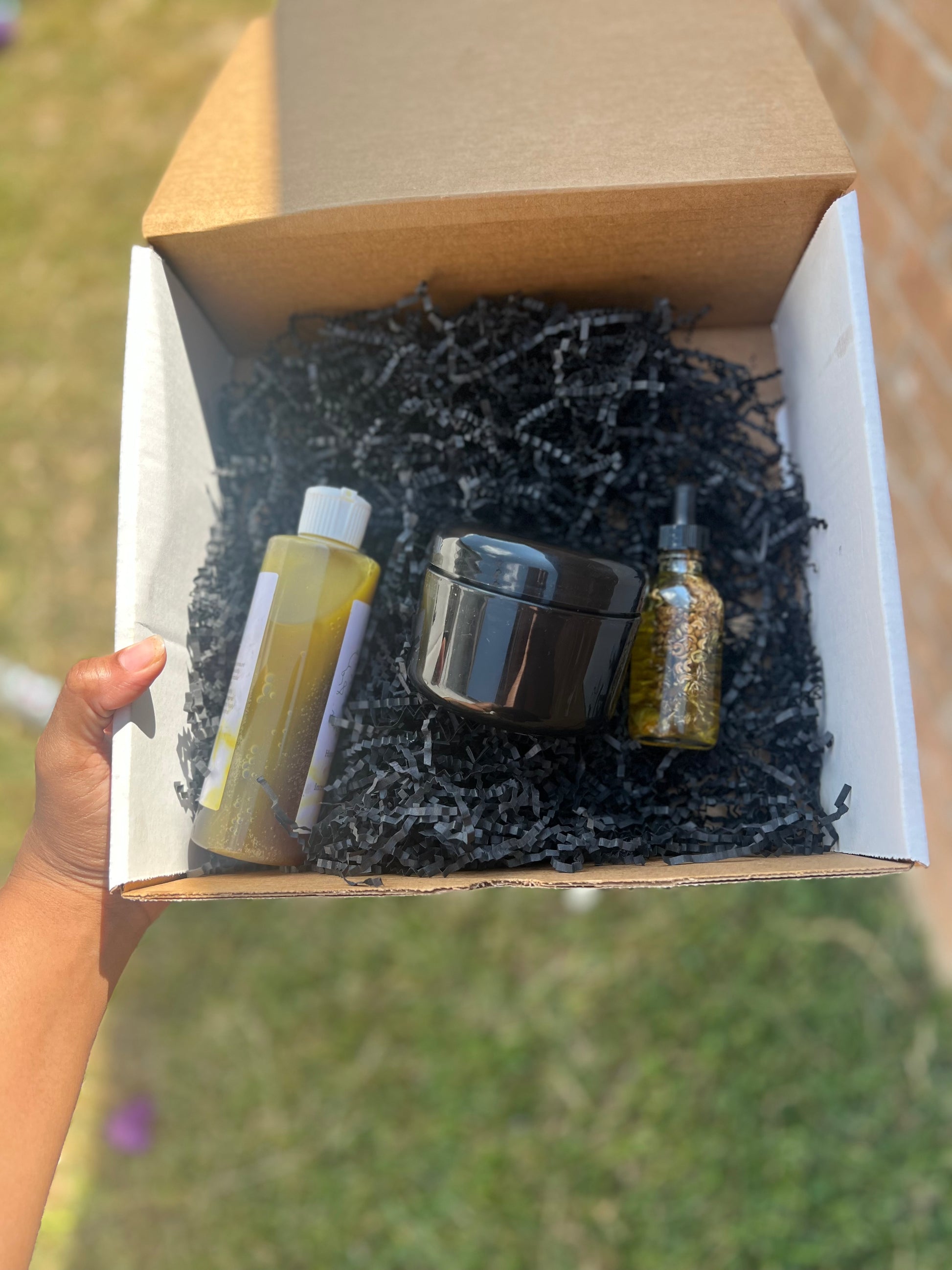 Comes with either our Healing Honey & Turmeric Cleanser, Honey & Turmeric Scrub & Calendula & Lemongrass moisturizer for dry/combination/or not sure skin, or our Active Activated Charcoal & Turmeric Cleanser, Activated Charcoal & Turmeric Scrub & Calendula & Lemongrass moisturizer for Oily Skin.